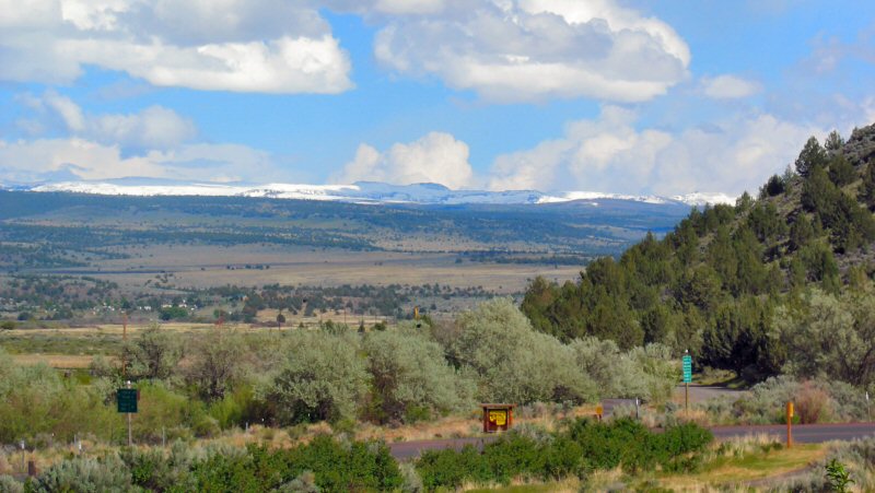 On Monday, we took some backroads south which paralleled US-395 about 25 miles to the west. Great roads, mostly paved, though there were some narrow and twisty one-lane, all-dirt parts through the tall timber. That was neat. The above shot was taken about half way to Burns, where the road met the paved road to Izee, OR.