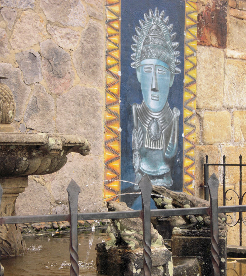 A frog fountain and Inca art in the central plaza — I couldn't pass up this shot.