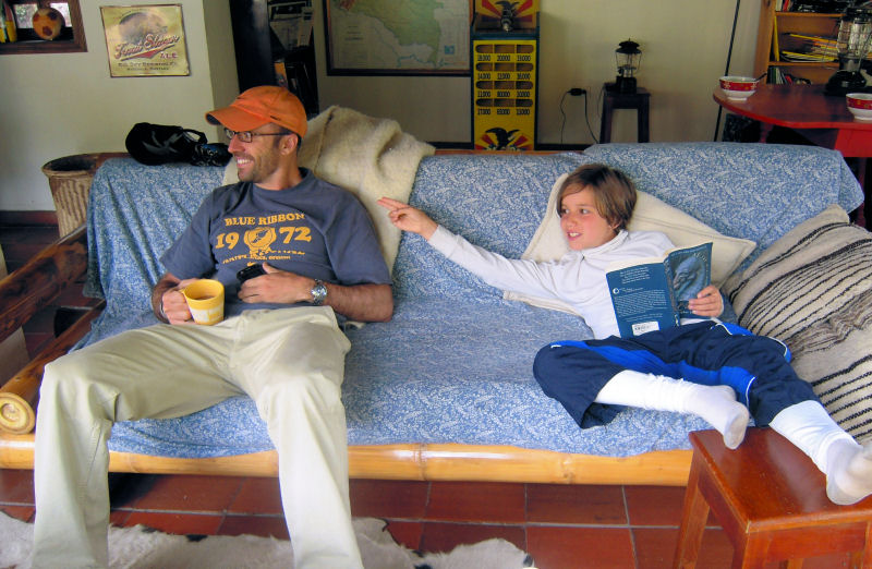 Mark and James Oliver lounging in the living room waiting for the next meal.
