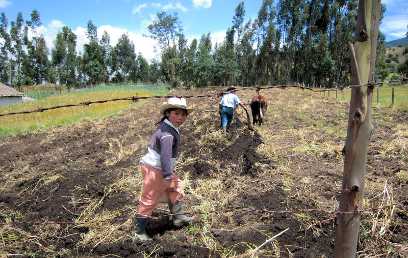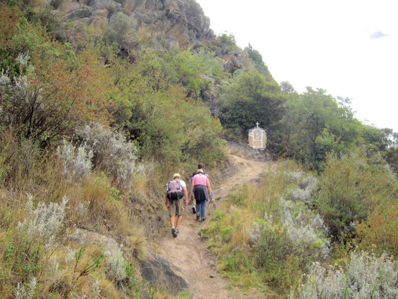 The last day (Monday) we hiked another 1,000' feet up to the Cross on the hill above Mongui. Along the way we encountered this family turning the sod with a wooden plow. The little girl might have been picking up potatoes. Or not.